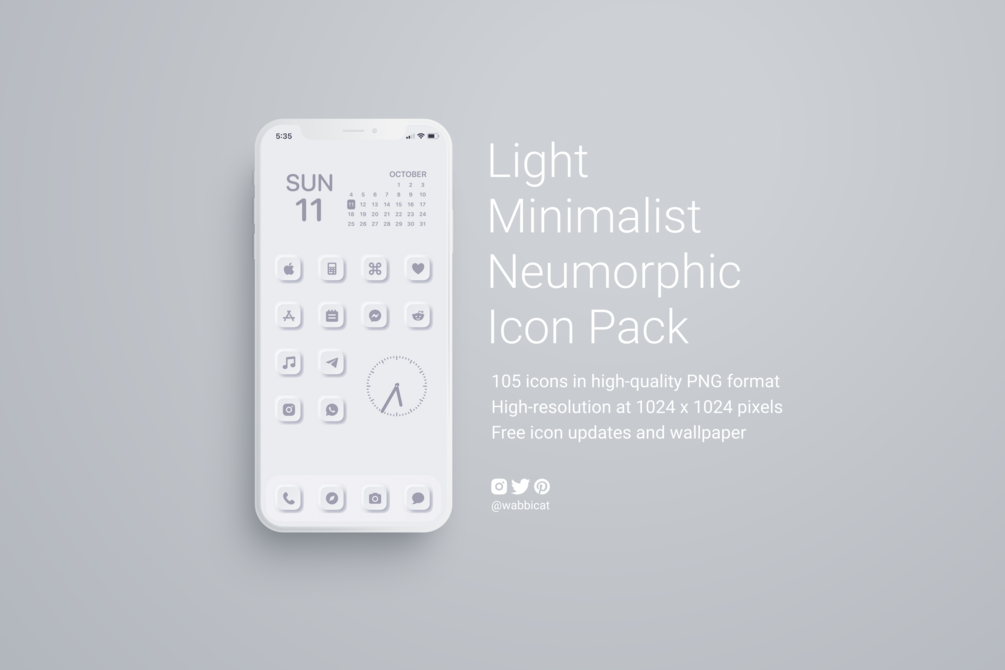 iOS14 & Android Neumorphic Minimalist Icon Pack - Light