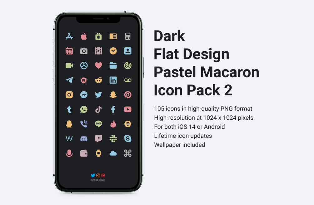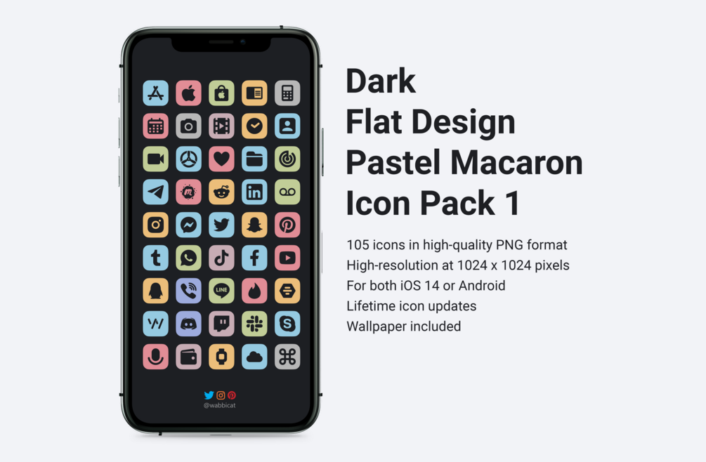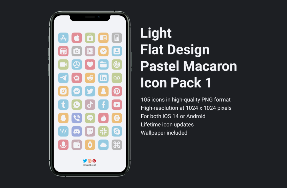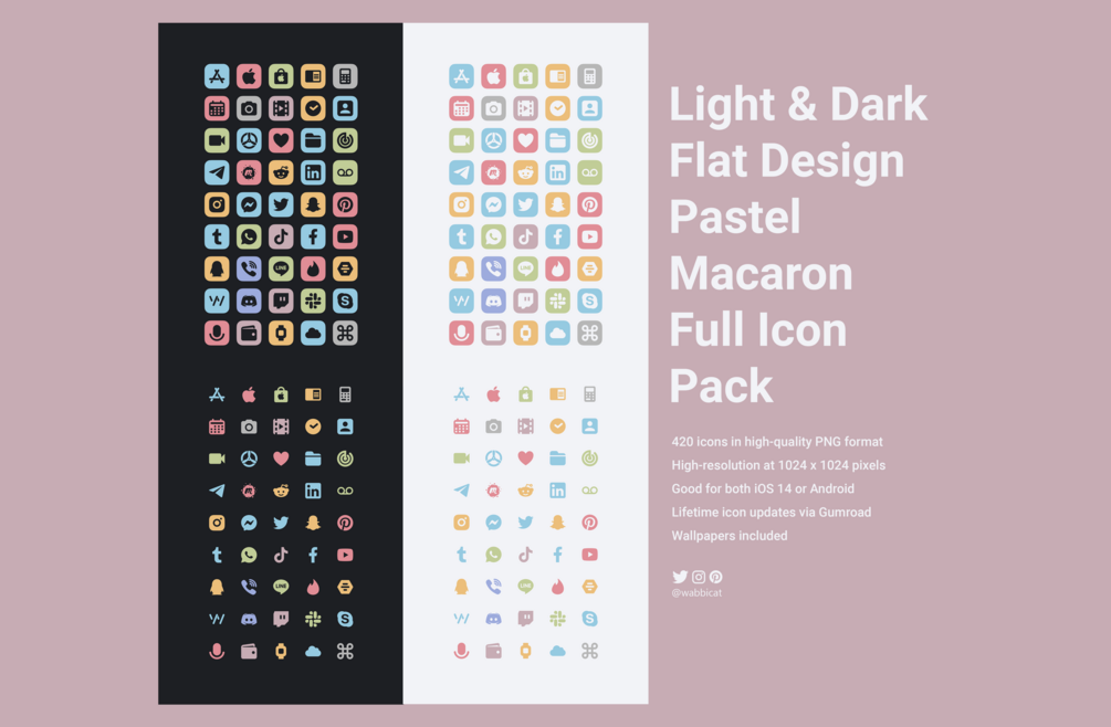 iOS14 & Android Pastel Flat Icon Pack - FULL Dark and Light