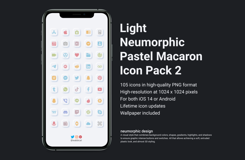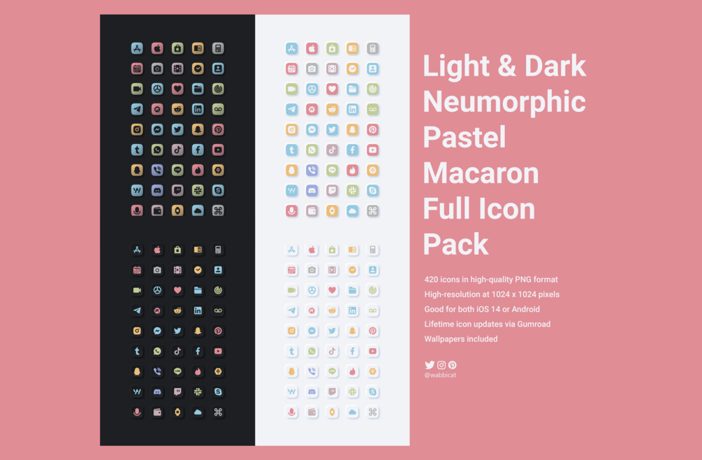 iOS14 & Android Neumorphic Pastel Macaron FULL DARK & LIGHT 4-PACKS SAVE 19%