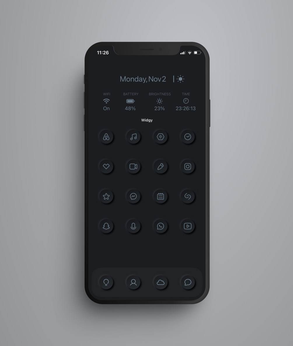 iOS14 & Android Minimalist Rounded Neumorphic Icon Pack - DARK